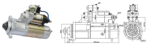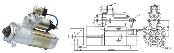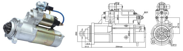 型號:SZQ21095017 規(guī)格:24V 7.5kW 特性:模數(shù):3.5 齒數(shù):11 配套機型:玉柴:6L、6M(50C端為兩針式插頭)